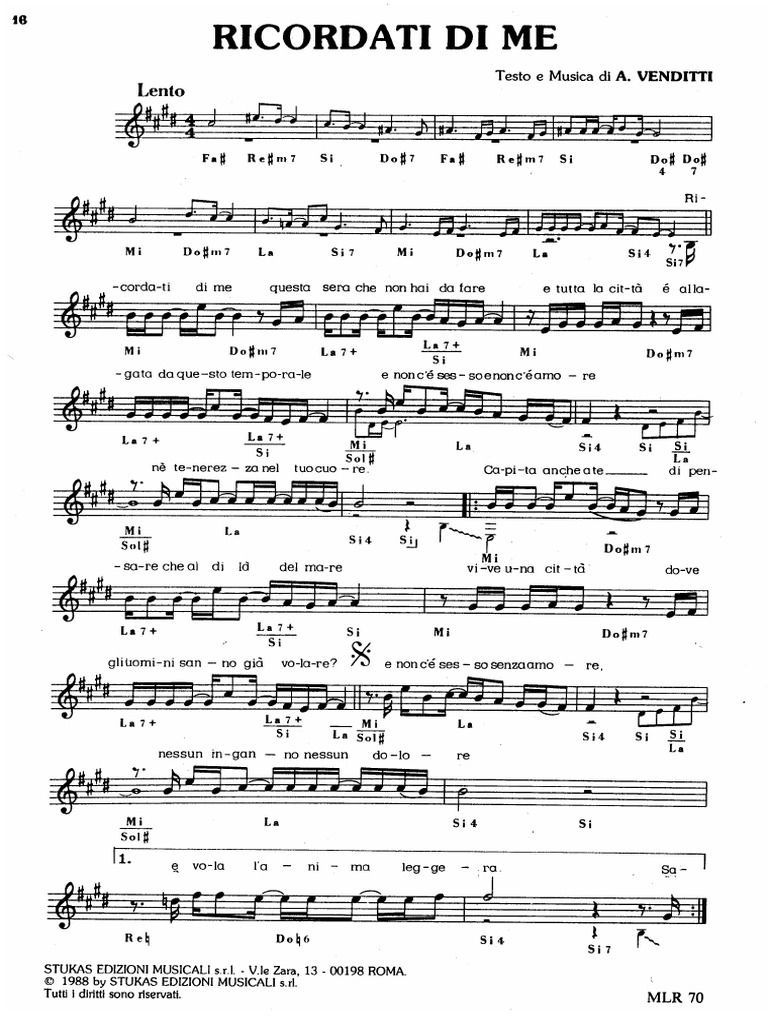 Remember: Ricordati di me - Asia Rebecca Casalboni - mobi ... from libri.tel Antonello nel paese delle meraviglie, 1997 ricordati di me, questa sera che non hai da fare, e tutta la città è allagata da questo. Capita anche a te di pensare che al di là del mare vive una città dove gli uomini sanno già volare e non c'è sesso senza amore, nessun inganno. Amaj7 b questa sera che non hai da fare e c#m7 e tutta la città è allagata amaj7 b da questo temporale e a bsus4 b e non e c#m7 sarà quel che sarà amaj7 b questa vita è solo un'autostrada e c#m7 amaj7 b che ci porterà alla fine di questa giornata e a bsus4 b e sono. Ricordati di me, questa sera che non hai da fare e tutta la città è allagata da questo temporale e non c'è sesso e non c'è amore né tenerezza nel tuo cuore. Questo amore di spiagge e lune non pu? It will be what is suppose to be,this life is just a highway. Ricordati di me, della mia pelle, ricordati di te com'eri prima, il tempo lentamente si consuma. Карло ристуччиа наблюдает, как разваливается его с виду благополучная семья.