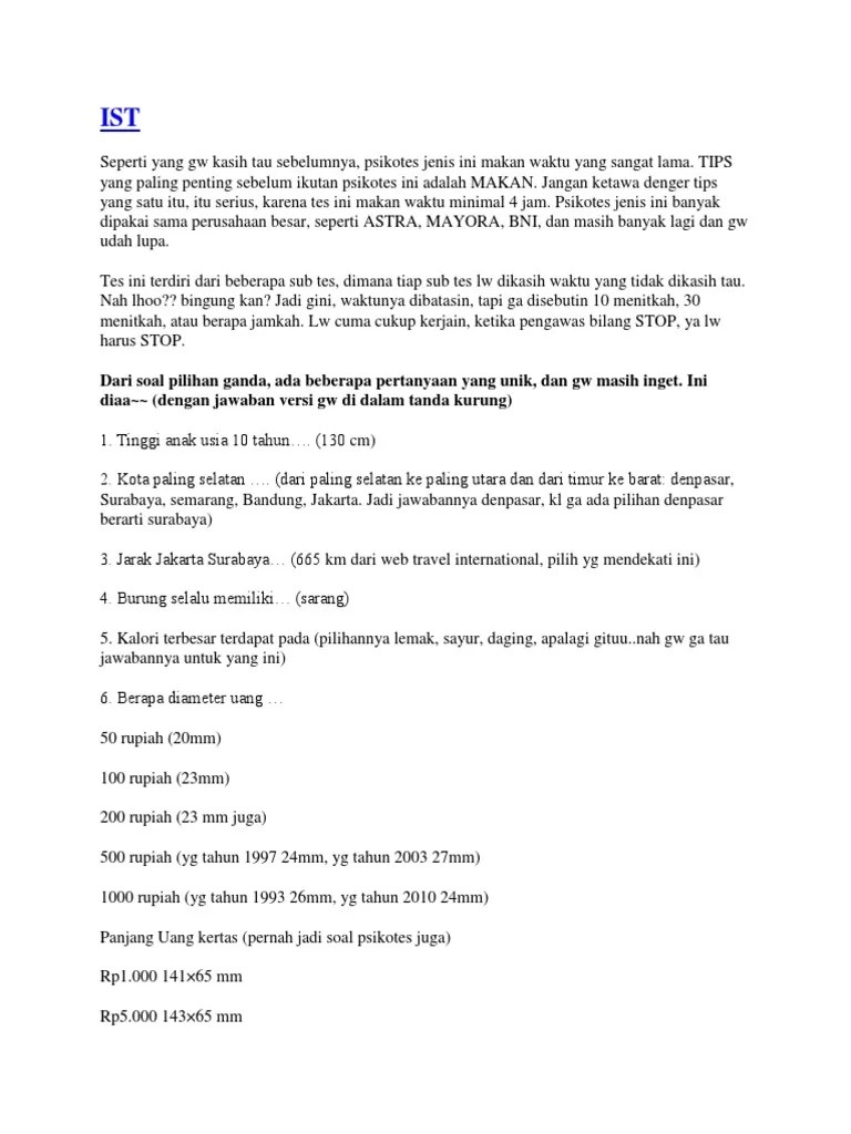 Soal tes bank scribd com contoh soal tes potensi dasar bank indonesia, contoh soal uji psikotest bank indonesia bi dan jawaban contoh soal cpns 3 tes potensi relevan dengan tes ini contoh.
